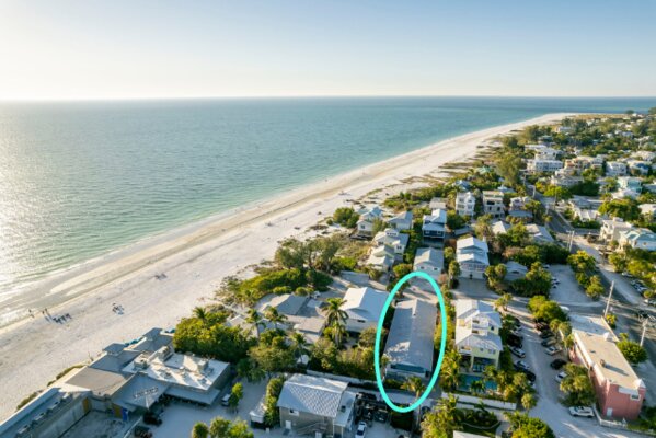 This 1-bedroom 1 bath accommodates 3 adults. The bedroom features a queen bed and there is a sofa bed in the living room. The bathroom is located just off the bedroom and offers a tub shower combo and single sink. One outdoor parking spot is provided. All 4 units can be rented at the same time to accommodate a large family, reunion, or wedding parties with enough advanced notice. Catch some yoga on the beach starting at 8:30 a.m. on Saturdays at the Pine Ave beach access.