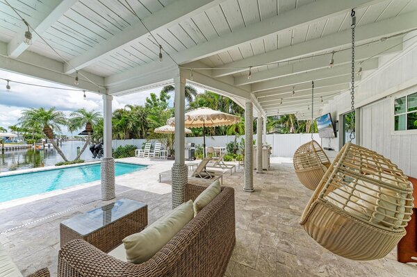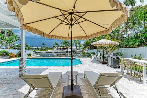 Outdoors, the private pool and patio set the stage for true Florida living. Lounge in the sun, take a refreshing dip, or enjoy evening cocktails as the sky glows over the canal. A private dock extends the experience, perfect for fishing, kayaking, or simply watching for dolphins and manatees as they glide through the water. Guests also have access to two kayaks, making it easy to explore on the water.