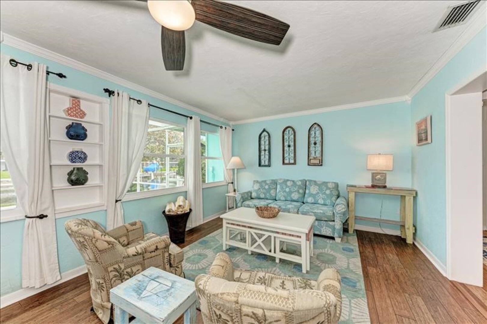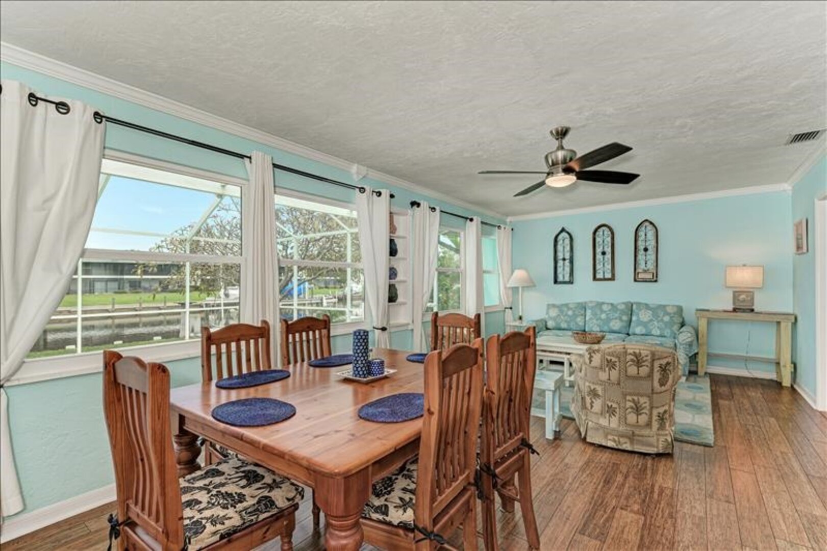 Fantastic spacious home with a jacuzzi, heated pool, and kayaks on the inlet. Covered patio with lounge chairs and dining area. Close to nature preserves and Causeway Park with great trails. Short drive to Anna Maria Island’s beautiful beaches and sunsets. Comfortable for seven guests with a well-equipped kitchen and scenic sitting room.
