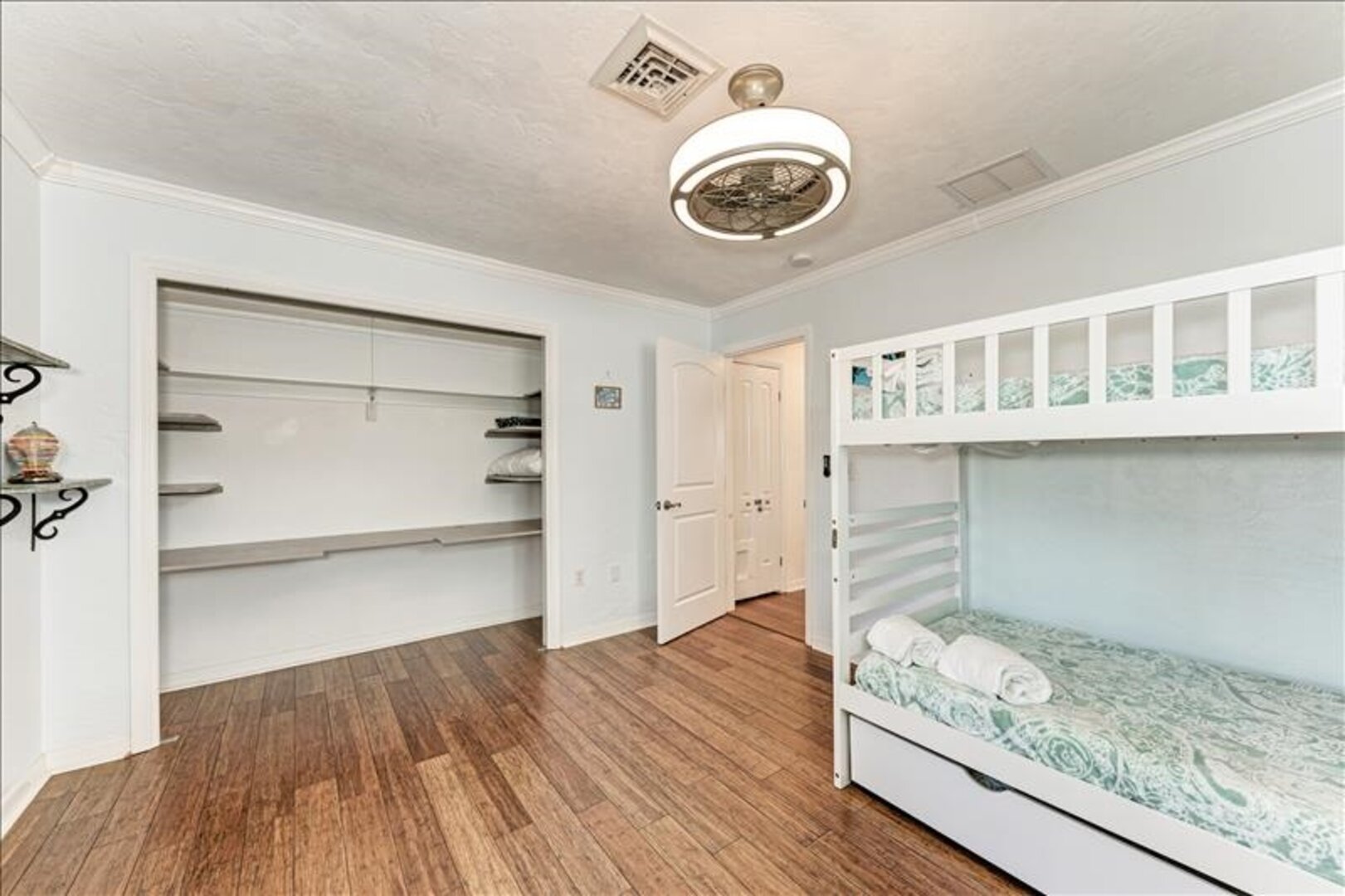 2 twin beds (bunkbed) and a twin a trundle