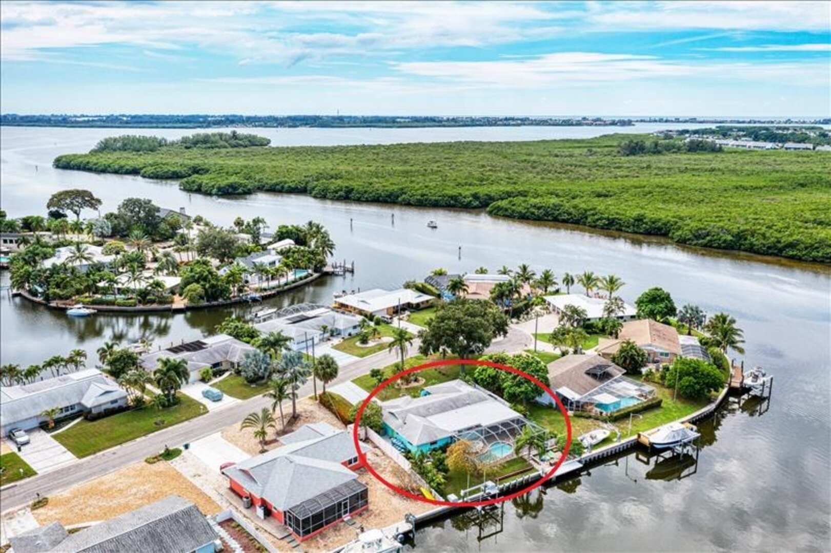 Sunshine Villa Minutes from AMI and Robinson Preserve. Pool, Spa, Boat Dock