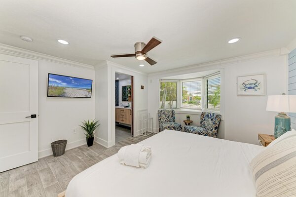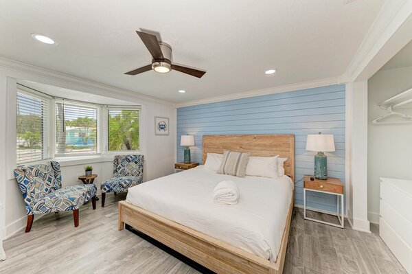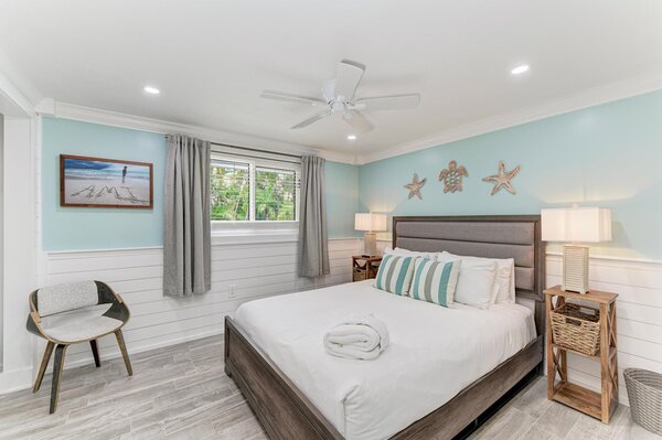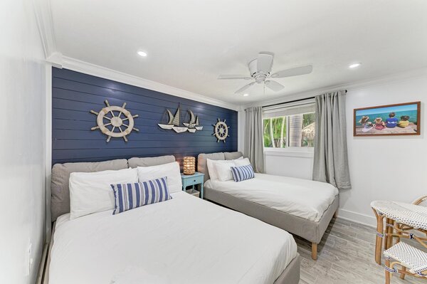 This ground level beach house offers 4 bedrooms, 3 bathrooms (2 are ensuites) and all the coastal charm you expect from a luxury vacation rental home that is located on beautiful Anna Maria Island.