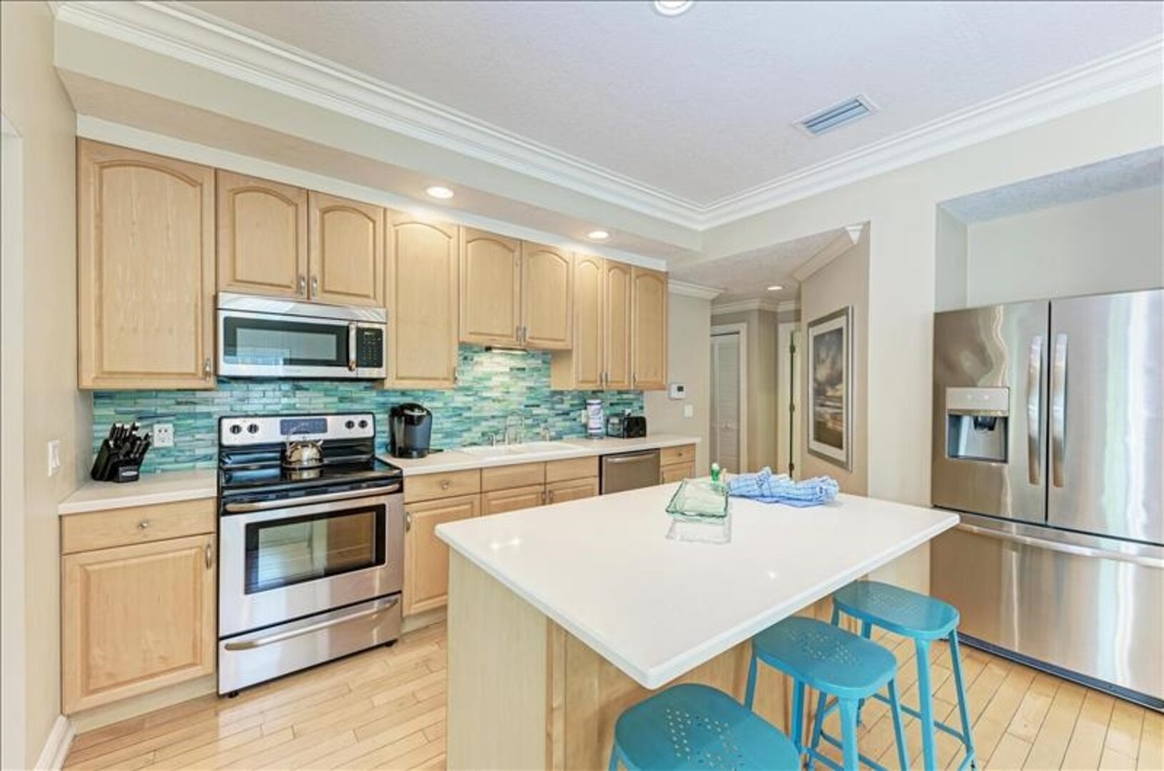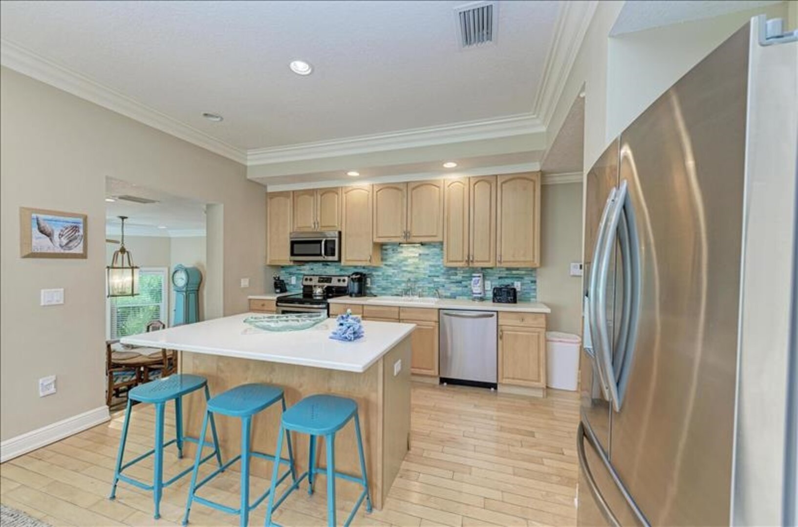 Find ease and relaxation the moment you arrive, this charming multi-level home is nestled among palm trees on a quiet cul-de-sac just a few flip flop steps away from the beach. Leave your car parked in one of the 3 spots provided - the town is very walkable, and one of our island's free trolley stops is only a block away. "Beach Escape" offers all the goodies to make sure your vacation doesn't skip a beat.