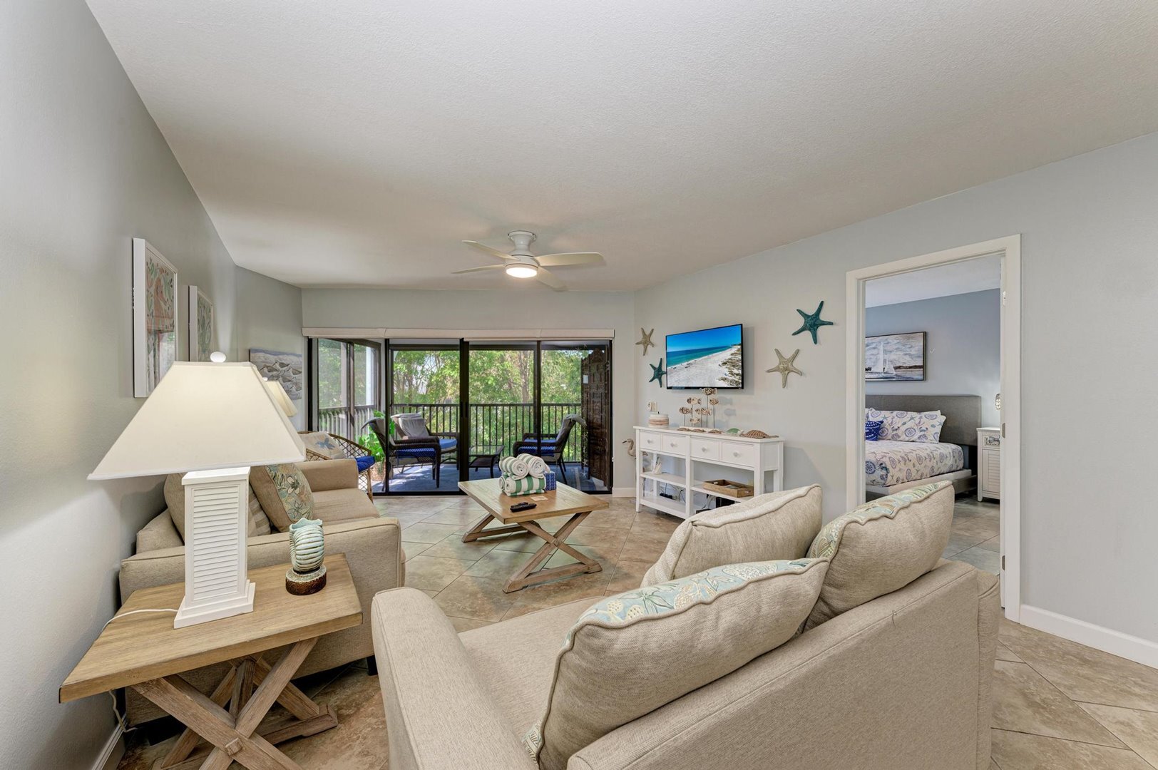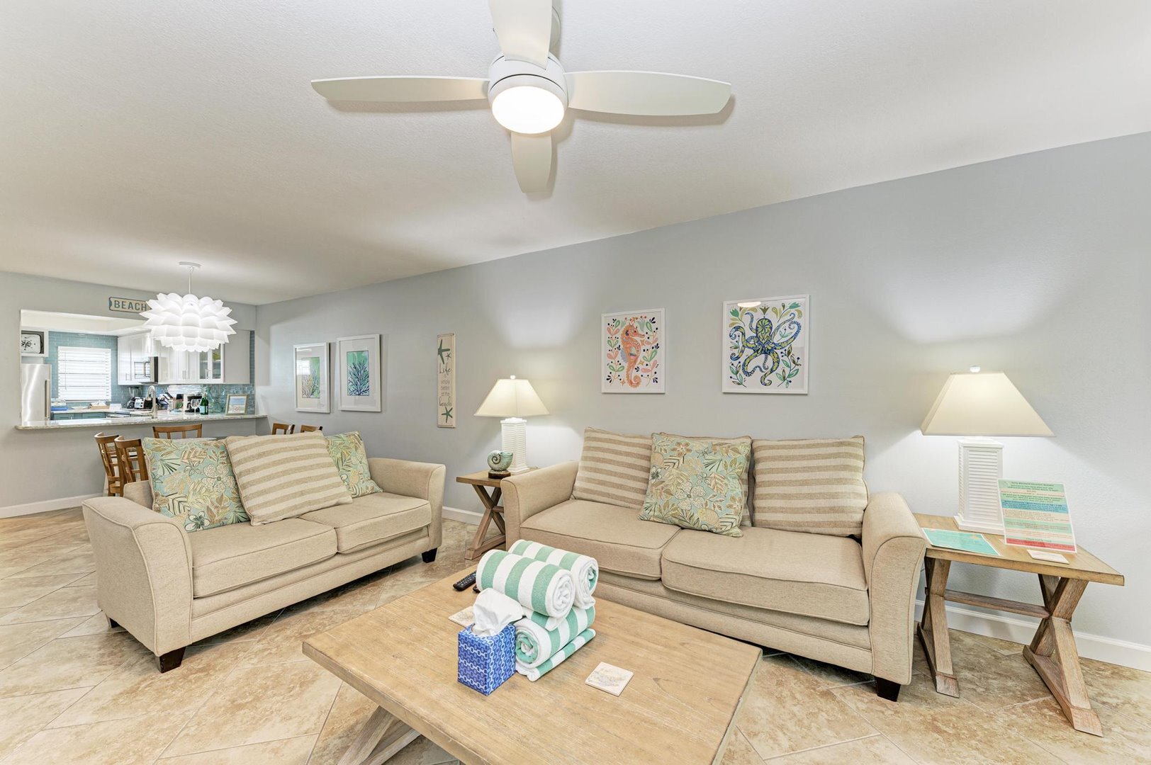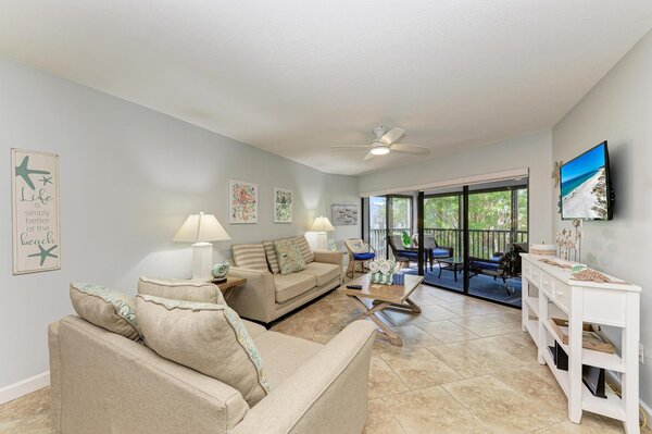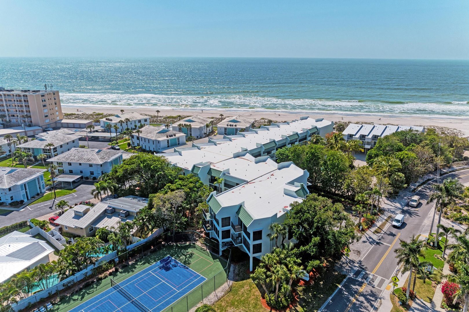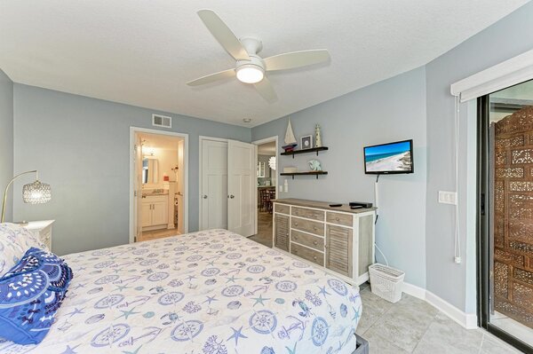 Your will enjoy your private lanai while listening to the sounds of the waves gently caressing the shore. As always, we make sure you have the ability to stay connected on our free high-speed wireless internet! Kick back and relax, turn on one of the Flat screen TV’s and catch that flick you always wanted to see or that must-see sports game. This condo association offers a tennis/pickleball court for your enjoyment, Equipment is provided in the storage unit for this condo. Beach chairs and toys are also provided in the storage unit. If you are looking for Bikes or additional beach equipment, there is a rental shop just two blocks away.