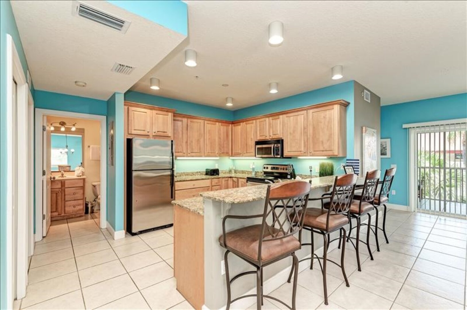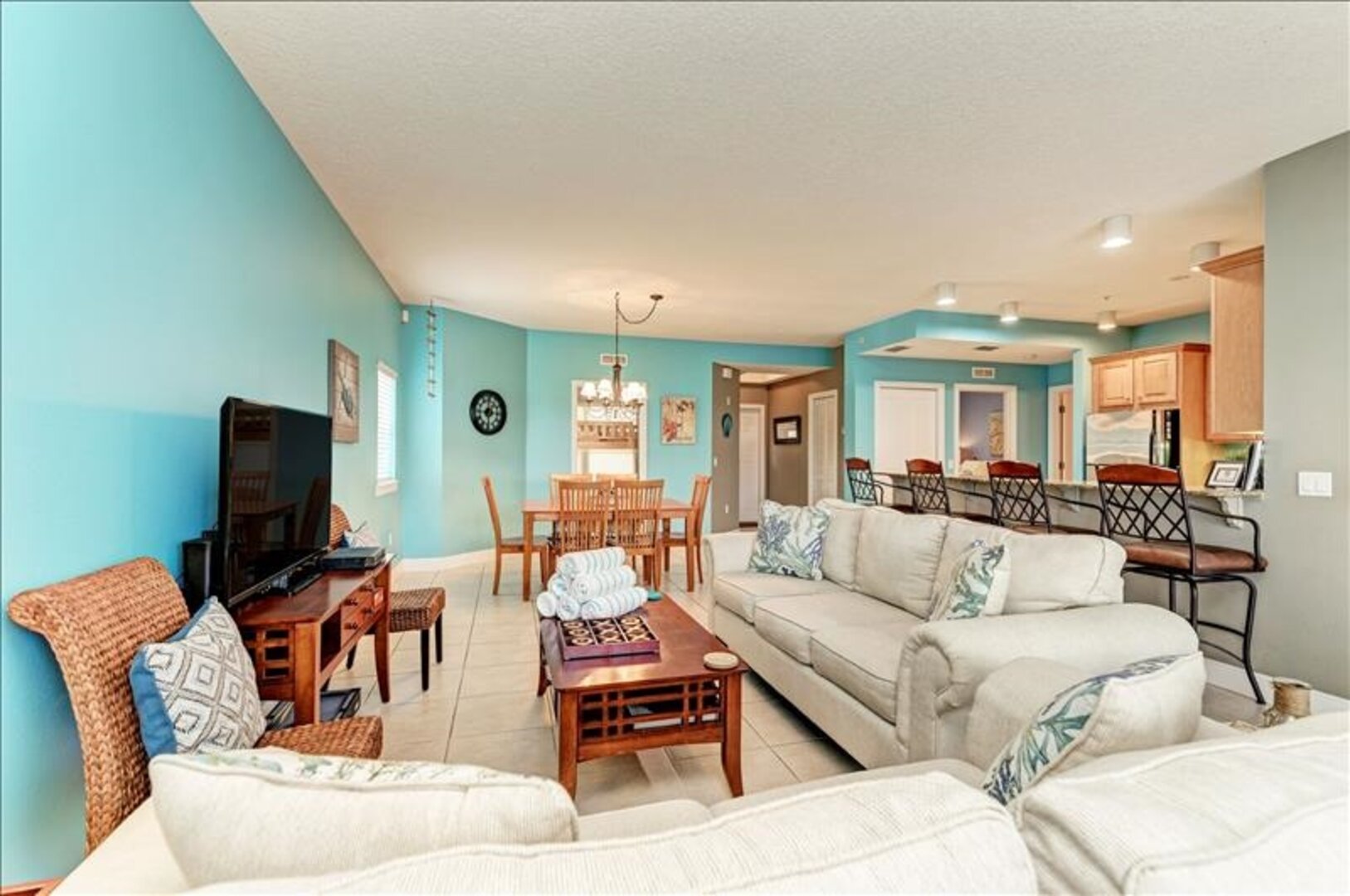 Perfect location on the island. We rented a golf cart to get around but the condo was pretty central. We enjoyed the beach directly across the street and the restaurants and bars in walking distance at night.