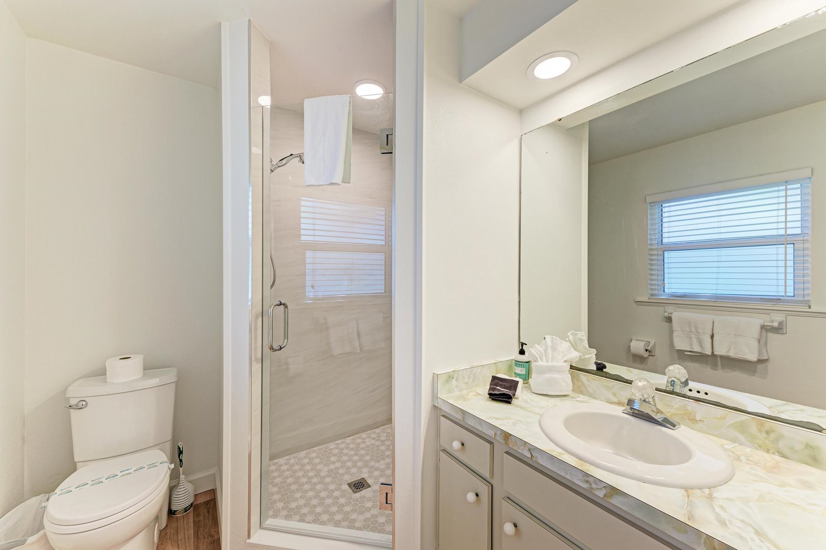 This 1-bedroom 2 bath accommodates 4 people comfortably. The primary bedroom features two queen beds and offers an ensuite bathroom with a shower no tub. The living room features a queen sleeper sofa. Just off the kitchen is the 2nd bathroom which offers a tub/shower combo. Two outdoor parking spots are provided. Both units A and B can be rented at the same time to accommodate a large family, reunion, or wedding parties up to 8 guests with enough advanced notice, subject to availability. Catch the sunset from the new elevated deck, two seats are provided.